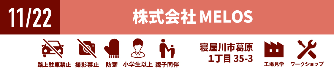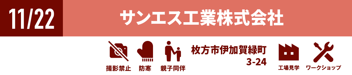 開催場所 | ①KUZUHA MALL 南館ヒカリノモール1階SANZEN-HIROBA前 (大阪府枚方市樟葉花園町15-1・アクセス/京阪樟葉駅徒歩スグ) ②各工場にて現地開催 |