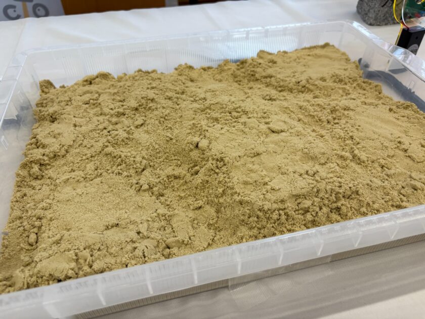 普通の砂とは違ってシリコンが混ざった特殊な砂だそうで、そうすることで触れても手にまとわりつかないんだそうです!