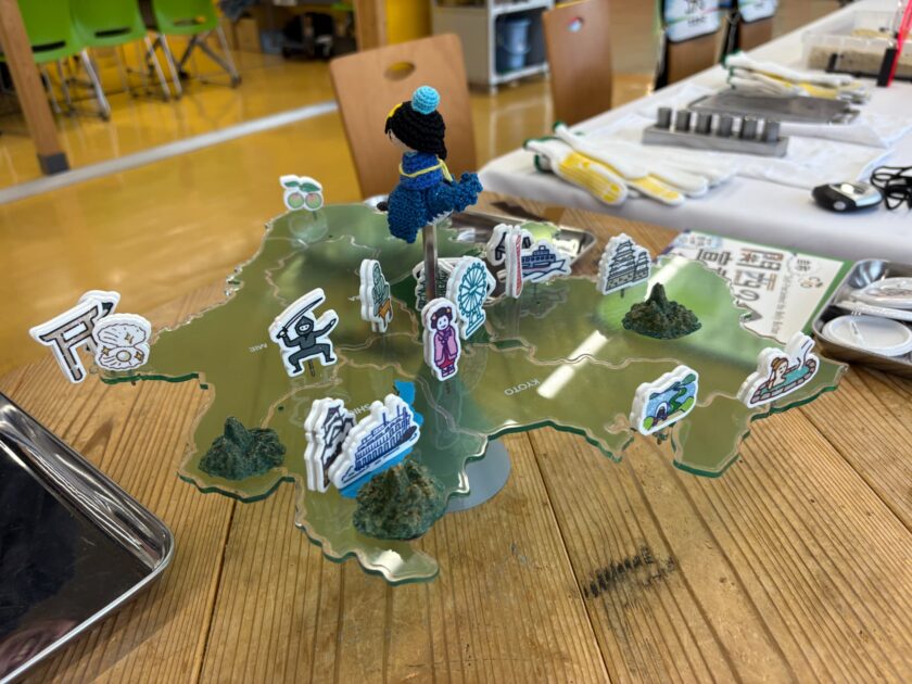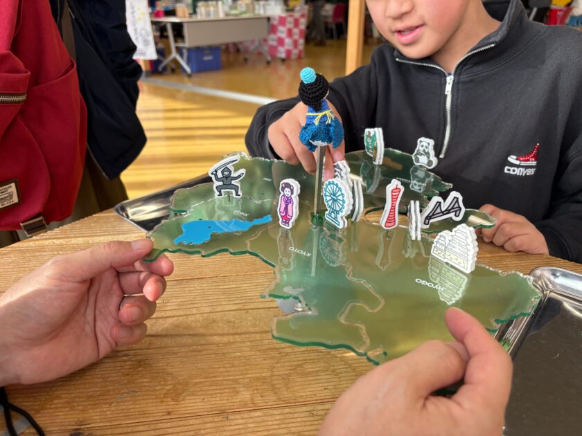 中に三つあるお城のピン(ちなみに彦根城、大阪城、姫路城)をちゃんと見分けられる参加者がいたりするも、バランスを取るときはみんな苦戦。でも最終的にはなんとかバランスがとれて、成功した時にはみんな大喜びでした!